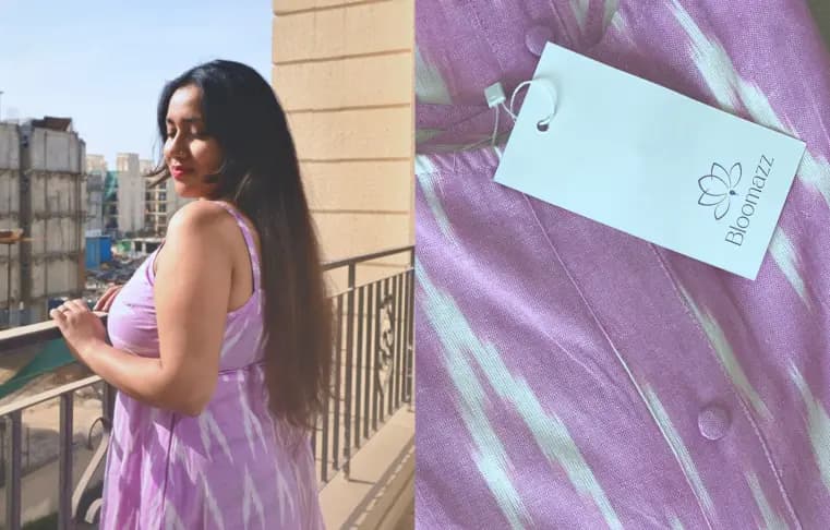 Searches: sustainable cotton dress, handloom ikat dress, ethical fashion India.